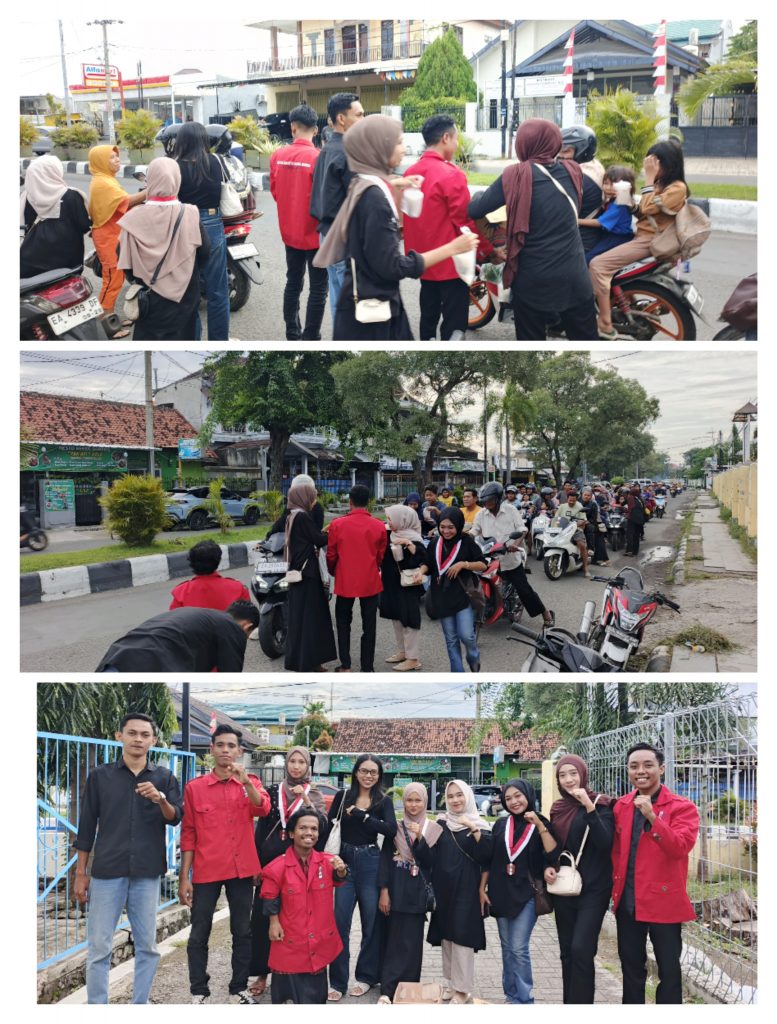 Pengurus dan Anggota organisasi kemahasiswaan itu dengan semangat gotong royong membagikan takjil berbuka puasa ke pengendara jalan, Minggu (18/3/2026).