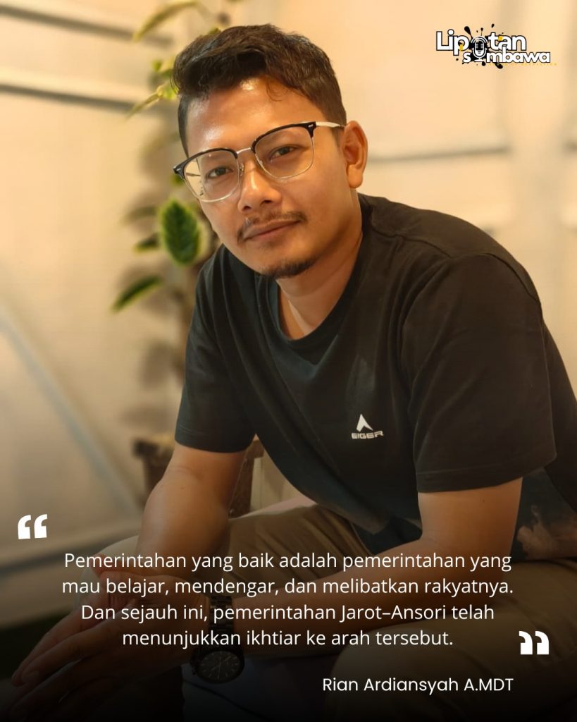 Kesuksesan sebuah pemerintahan daerah tidak hanya diukur dari seberapa banyak program yang diluncurkan, tetapi sejauh mana program tersebut dijalankan secara transparan, berdampak nyata, serta berkelanjutan. Pemerintahan Jarot–Ansori di Kabupaten Sumbawa menjadi salah satu contoh menarik dalam praktik tata kelola pemerintahan yang mulai menjadikan keterbukaan informasi publik sebagai fondasi utama pembangunan.