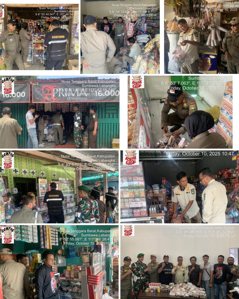 Kegiatan berlangsung pada 9–10 Oktober 2025 dengan melibatkan Satpol PP, Bea Cukai, Kodim 1607, Polres, dan Kejaksaan Negeri Sumbawa. Selain menyita ratusan produk tanpa pita cukai, petugas juga memberikan imbauan langsung kepada pedagang agar tidak menjual barang ilegal.